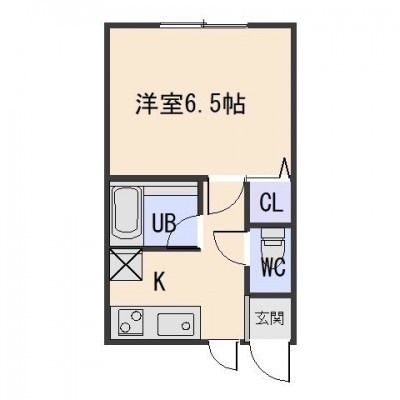 1K(22.3m²)└ 洋室6.5帖 K