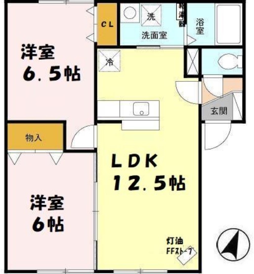 2LDK(53.98m²)└ LDK12.5帖 洋室6.5帖 洋室6帖
