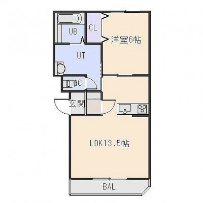 1LDK(44.44m²)└ LDK13.5帖 洋室6帖