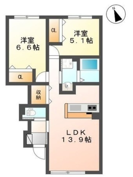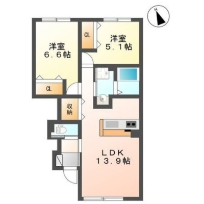 2LDK(57.16m²)└ LDK13.9帖 洋室6.6帖 洋室5.1帖