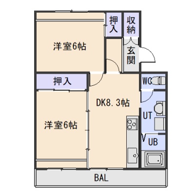 2DK(50.69m²)└ 3階:DK8.3帖 洋室6帖 洋室6帖