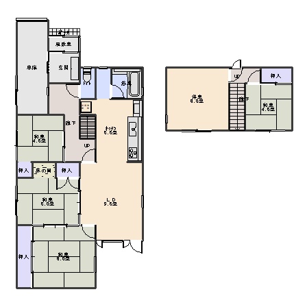 5LDK(100.33m²)└ 1階:LD9.5帖 K6.5帖 和室8帖 和室6帖 和室4.5帖 / 2階:洋室8帖 和室4.5帖
