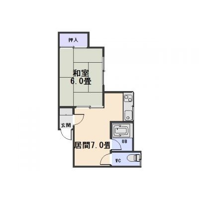 1DK└ 居間7/和室6