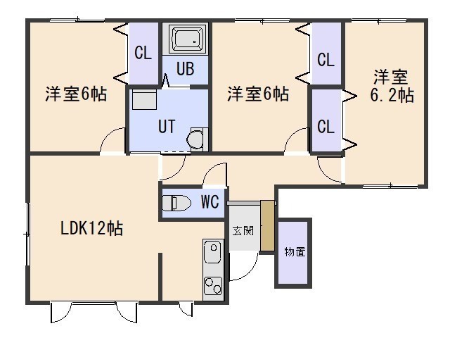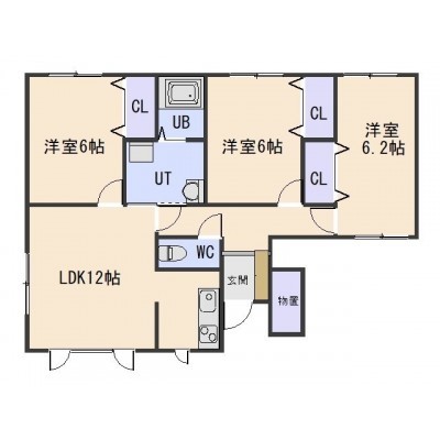 3LDK└ LDK12帖 洋室6帖 洋室6帖 洋室6.2帖