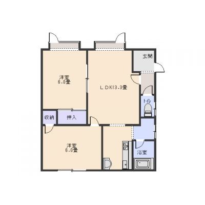 2LDK└ LDK13.3帖 洋室6帖 洋室6帖