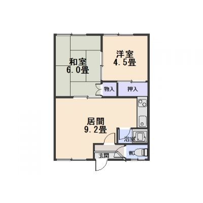2DK└ L9.2帖 洋室6帖 和室4.5帖 / 居間9.2/洋室6/和室4.5