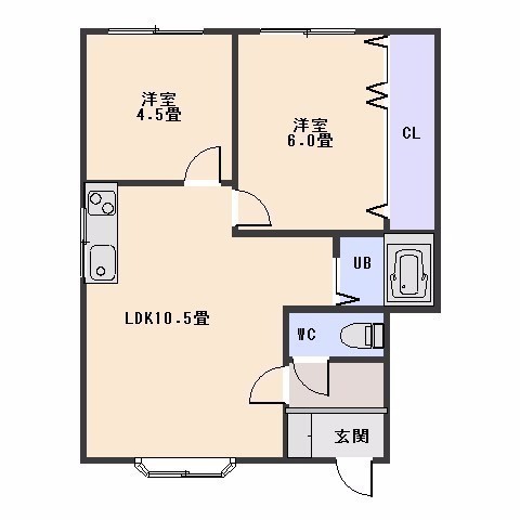 2LDK(45.86m²)└ LDK10.5帖 洋室6帖 洋室4.5帖