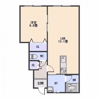 1LDK(44.94m²)└ LDK13帖 洋室6帖