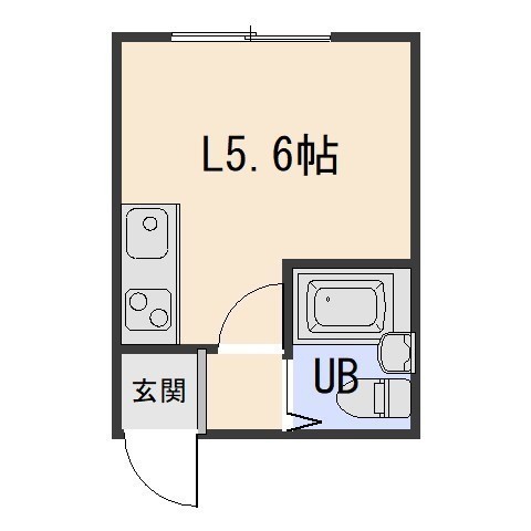ワンルーム(12.6m²)└ 洋室5.6帖