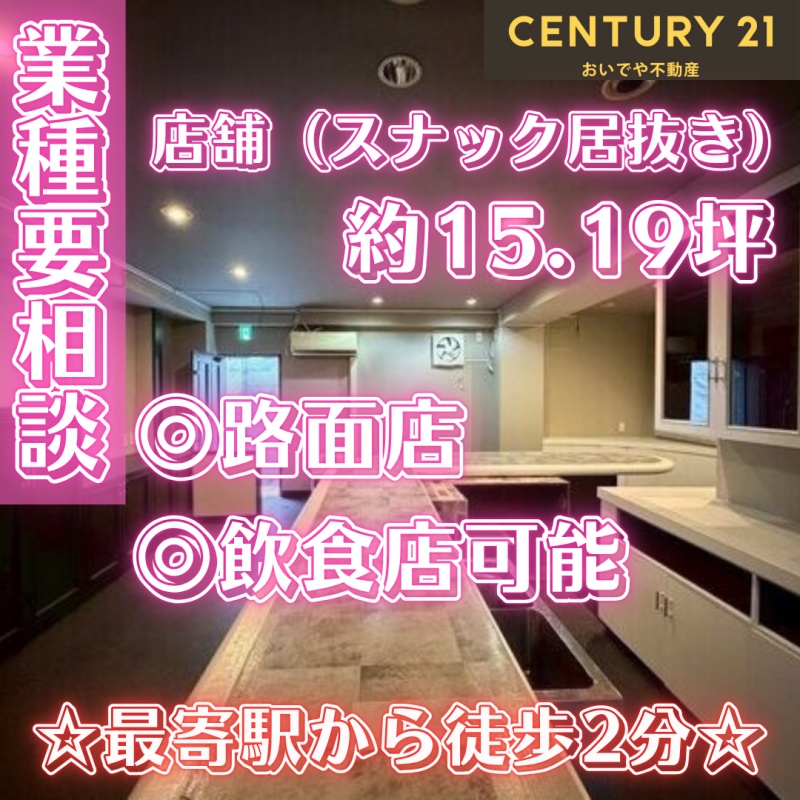 ここに注目!札幌市営地下鉄南北線「澄川」駅まで徒歩2分の好立地!駅近の路面店舗物件のご紹介です。周辺には「マックスバリュ」や「ツルハドラッグ」、銀行、郵便局などが揃い、生活利便性が高く集客も期待できる環境です。 広々50.24㎡の1階路面店で、視認性も良好。お客様を迎えやすい空間です。 エアコン、灯油暖房、照明器具も完備されており、開店時の初期費用を抑えられます。 喫茶・カフェ(軽飲食)やバー・クラブ・スナックなど、幅広い業種におすすめです。 礼金ゼロも嬉しいポイント!新しいビジネスの拠点として、この機会にぜひご検討ください。お問い合わせお待ちしております。
