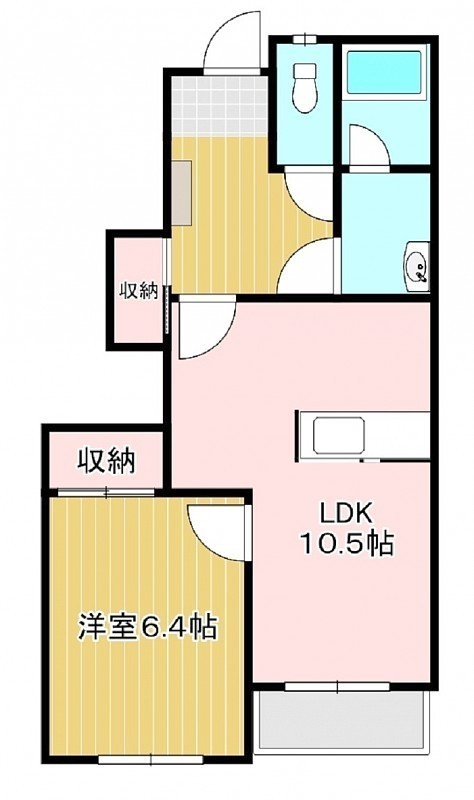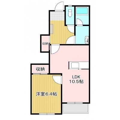 1LDK(44.62m²)└ 1階:LDK10.5帖 洋室6.4帖