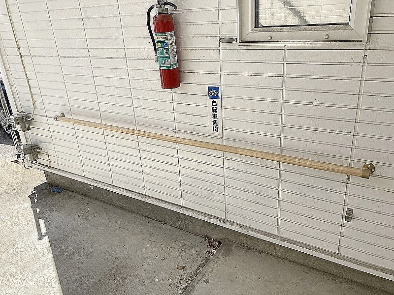 エントランスには駐輪用のバーが取り付けられています