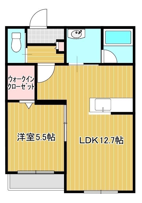 1LDK(43.8m²)└ 1階:LDK12.7帖 洋室5.5帖