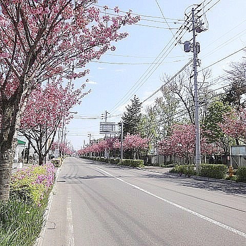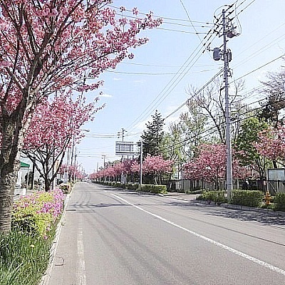 八重桜が美しい美原学園通り