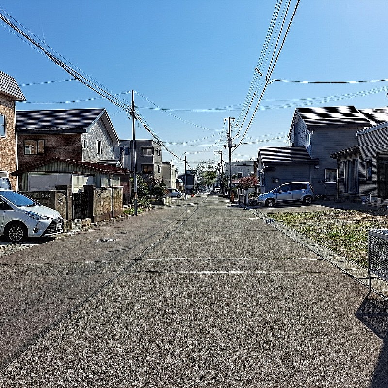 前面道路 突き当りが学園通り