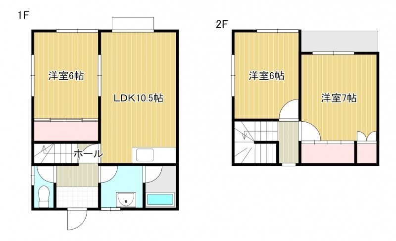 3LDK(70.8m²)└ 1階:LDK10.5帖 洋室6帖 / 2階:洋室6帖 洋室