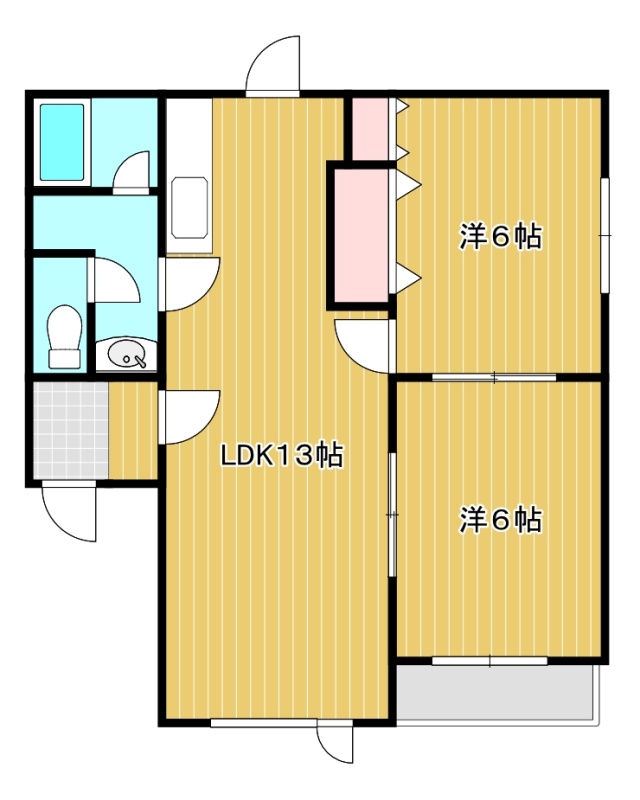 2LDK(52.58m²)└ 2階:LDK13帖 洋室6帖 洋室6帖