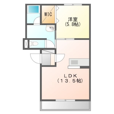 1LDK(44.76m²)└ 4階:LDK13.5帖 洋室5.8帖