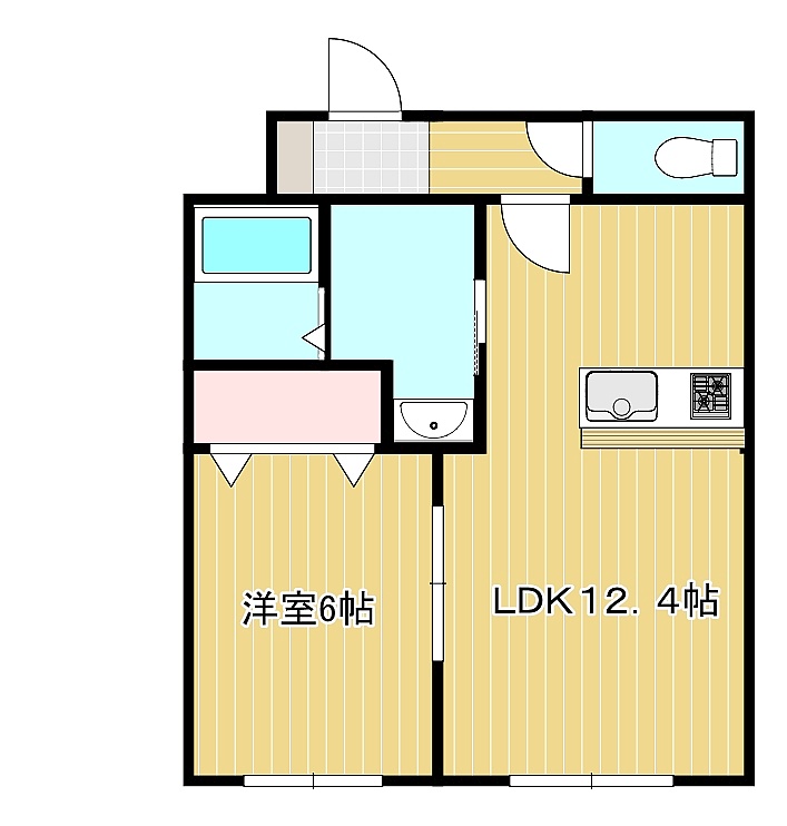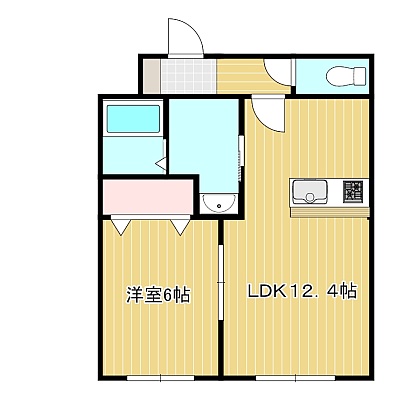 1LDK(43.5m²)└ 3階:LDK12.4帖 洋室6帖