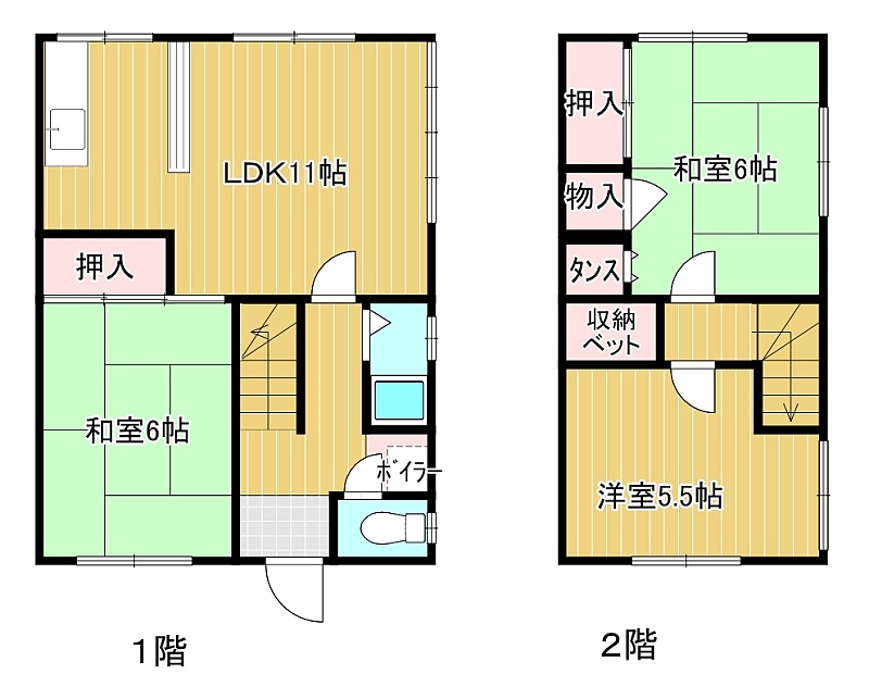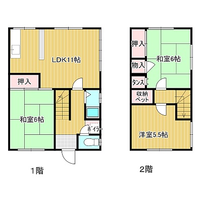 3LDK(66.23m²)└ 1階:LDK11帖 和室6帖 / 2階:和室6帖 洋室5.5帖
