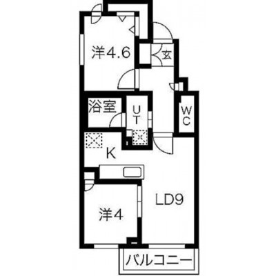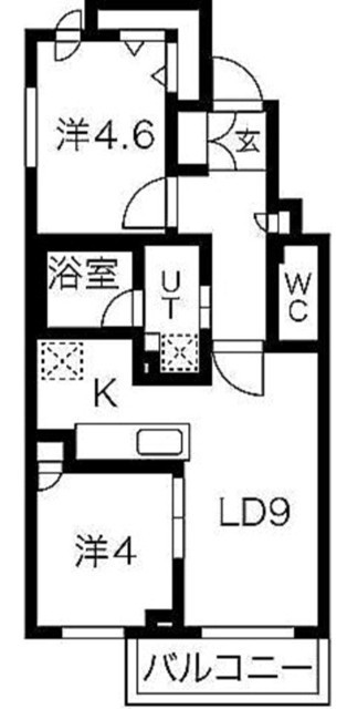2LDK(42.51m²)└ LD9帖 洋室4.6帖 洋室4帖