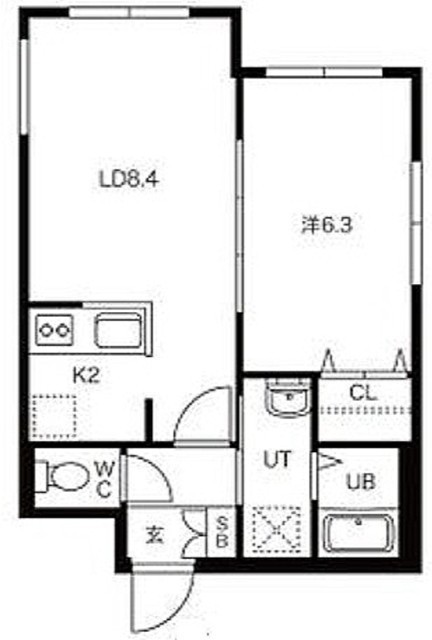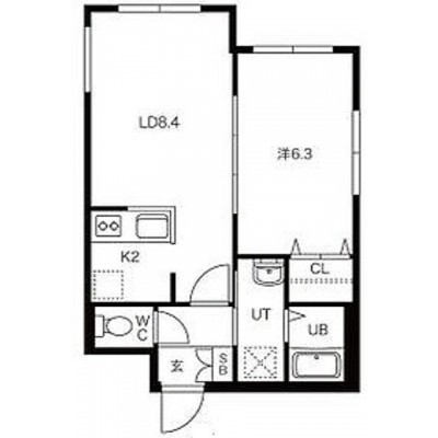 1LDK(35.47m²)└ LD8.4帖 K2帖 洋室6.3帖