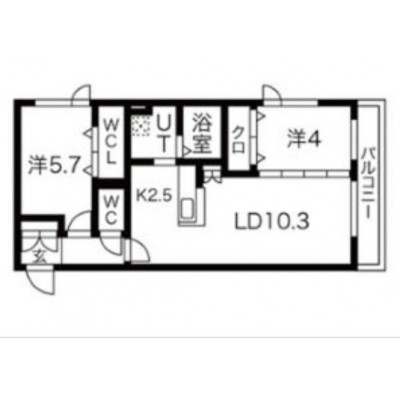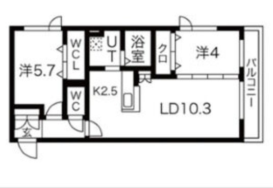 2LDK(52.53m²)└ LD10.3帖 洋室5.7帖 洋室4帖 K2.5帖