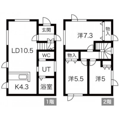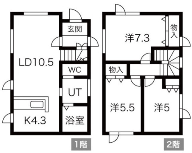 3LDK(76.6m²)└ LD10.5帖 K4.3帖 洋室7.3帖 洋室5.5帖 洋室5帖