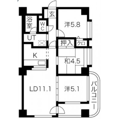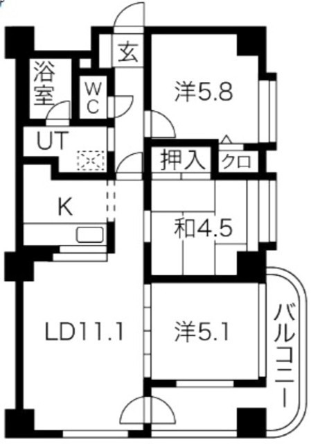 3LDK(63.91m²)└ LD11.1帖 洋室5.8帖 洋室5.1帖 和室4.5帖