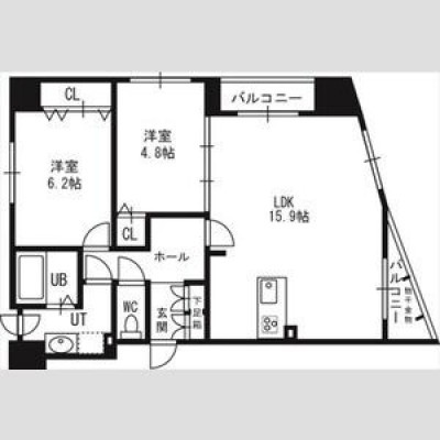 2LDK(61.36m²)└ LDK15.9帖 洋室6.2帖 洋室4.8帖