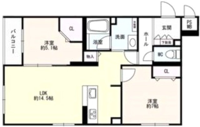 2LDK(64.12m²)└ LDK14.5帖 洋室7帖 洋室5.1帖