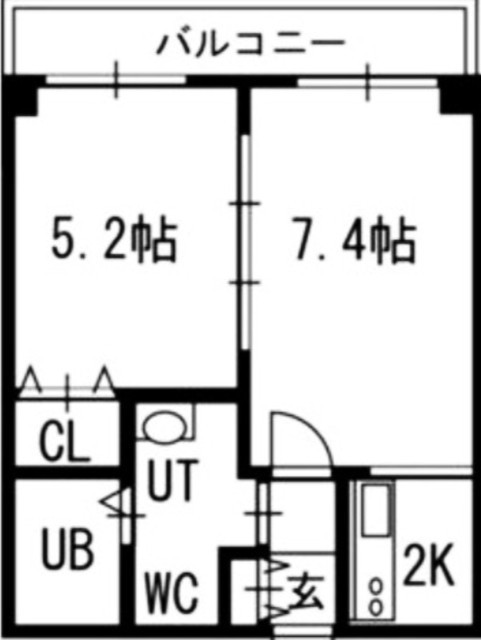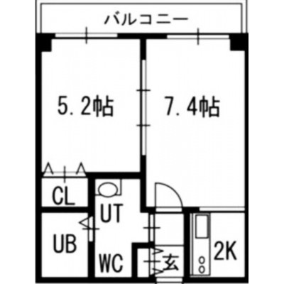1LDK(32.48m²)└ LD7.4帖 K2帖 洋室5.2帖