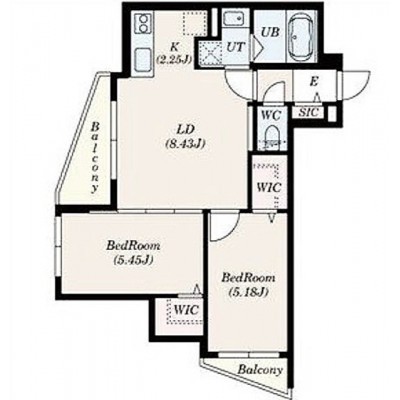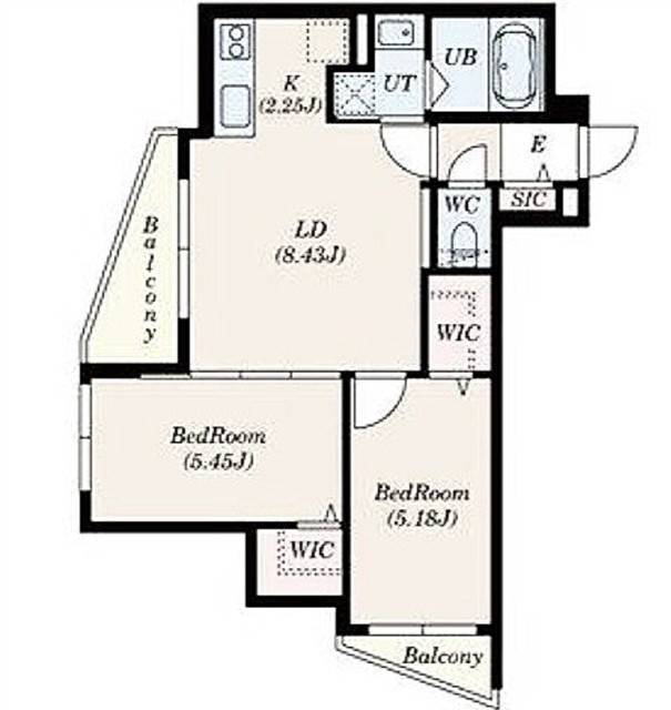 2LDK(47.32m²)└ LD8.43帖 K2.25帖 洋室5.45帖 洋室5.18帖