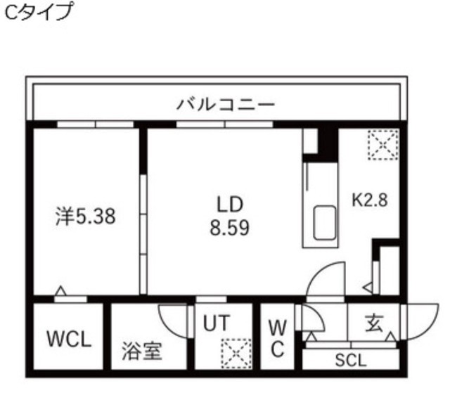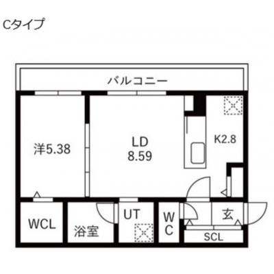 1LDK(40.03m²)└ LD8.59帖 K2.8帖 洋室5.38帖