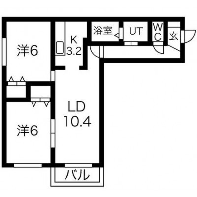 2LDK(55.6m²)└ LD10.4帖 K3.2帖 洋室6帖 洋室6帖