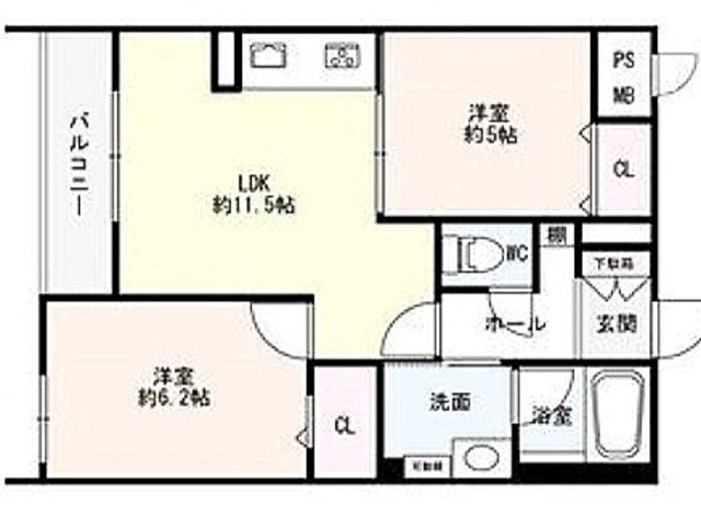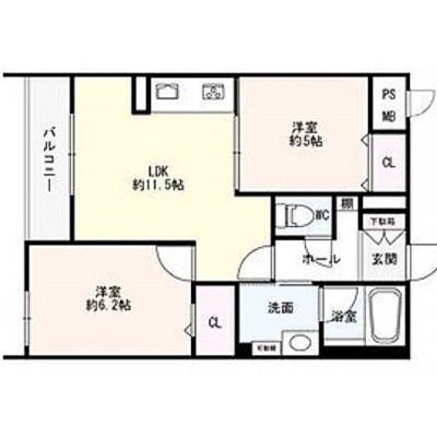 2LDK(53.93m²)└ LDK11.5帖 洋室5帖 洋室6.2帖