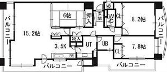 3LDK(85.78m²)└ LD15.2帖 K3.5帖 洋室8.2帖 洋室7.8帖 和室6帖