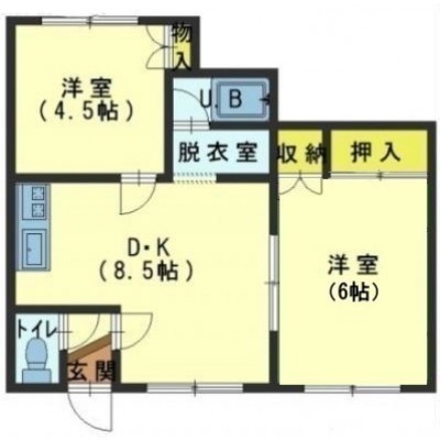 2DK(40.77m²)└ DK9帖 和室6帖 洋室4.5帖