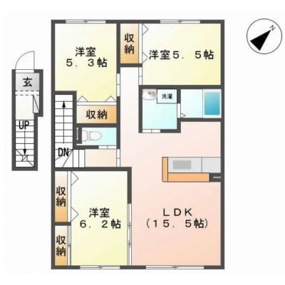 3LDK(75.31m²)└ LDK15.5帖 洋室6.2帖 洋室5.5帖 洋室5.3帖