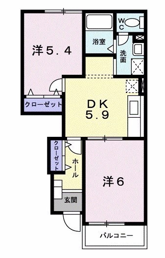 2DK(42.77m²)└ DK5.9帖 洋室6帖 洋室5.4帖