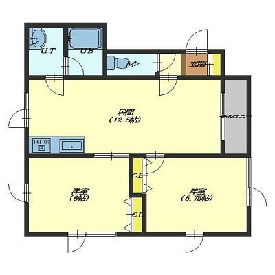2LDK(58.78m²)└ LDK12帖 洋室6帖 洋室5.75帖