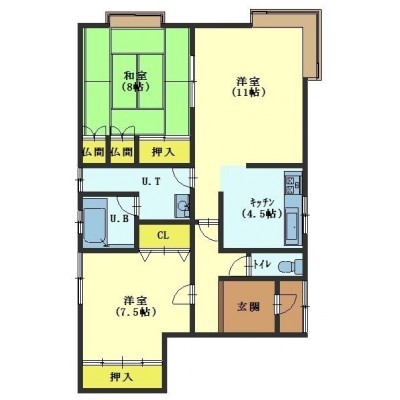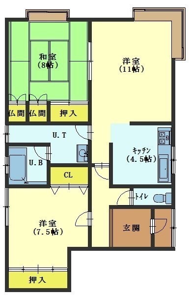 2LDK(76.14m²)└ LD11帖 K4.5帖 洋室7.5帖 和室8帖