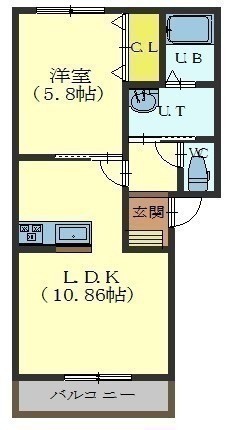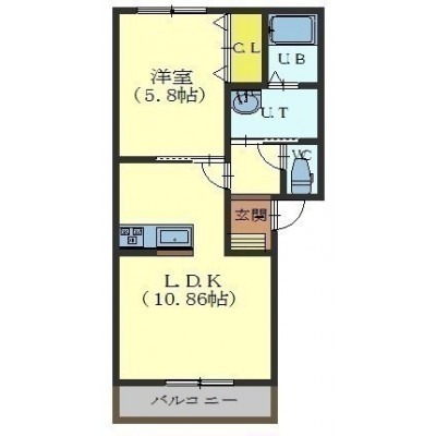 1LDK(38.83m²)└ LDK10.86帖 洋室5.8帖