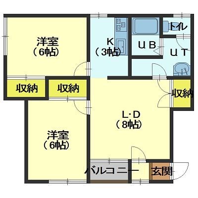 2DK└ DK8帖 洋室6帖 洋室6帖