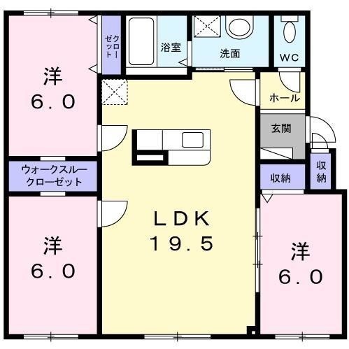 3LDK(79.5m²)└ LDK19.5帖 洋室6帖 洋室6帖 洋室6帖