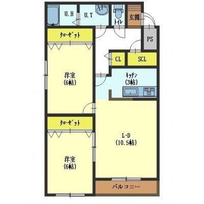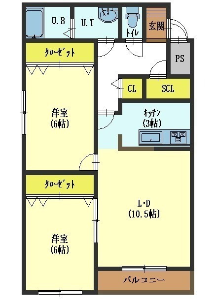 2LDK(61.56m²)└ LD10.5帖 K3帖 洋室6帖 洋室6帖
