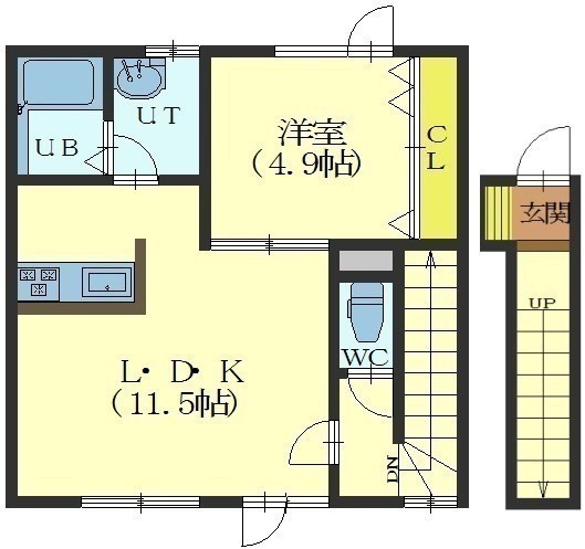 1LDK(43.05m²)└ LDK11.5帖 洋室4.9帖