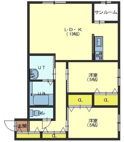 2LDK(67.35m²)└ LDK13帖 洋室5帖 洋室5帖