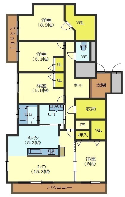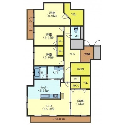 4LDK(114.79m²)└ LDK20.6帖 洋室8.9帖 洋室6.1帖 洋室6帖 洋室5.6帖