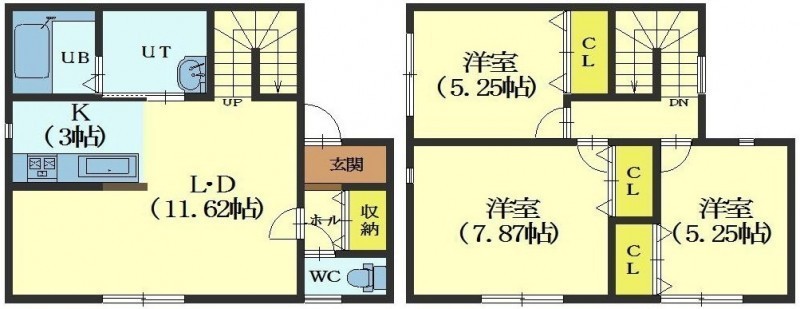 3LDK(81.38m²)└ 1階:LDK14.62帖 / その他:洋室6.5帖 洋室7.87帖 洋室5.25帖 洋室5.25帖